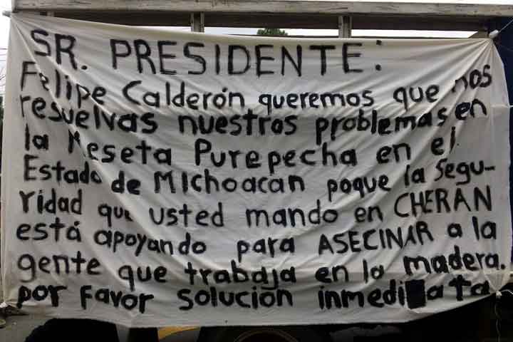 Comuneros de Capácuaro, Santa Cruz Tanaco y El Cerecito bloquearon la carretera Uruapan-Paracho, a la altura del entronque con Los Reyes, en protesta de las constantes movilizaciones de las Bases de Operaciones Mixtas (BOM), y de otras acciones que el gobierno ha implementado para frenar la tala clandestina y la delincuencia en la región.