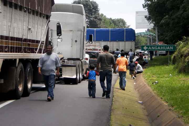 Al menos cuatro bloqueos carreteros se registraron éste mediodÃa en la Meseta Purhépecha, a la altura de las comunidades de Angahuan, Capacuaro, Santa Cruz Tanaco y la desviación a Tlazazalca; mientras que en la desviación a Los Reyes, secuestraron dos patrullas con una docena de policÃas federales a quienes mantenÃan encerrados en la jefatura de tenencia de Capacuaro. Están contra las acciones del personal de la Base de Operaciones M... Ver más...