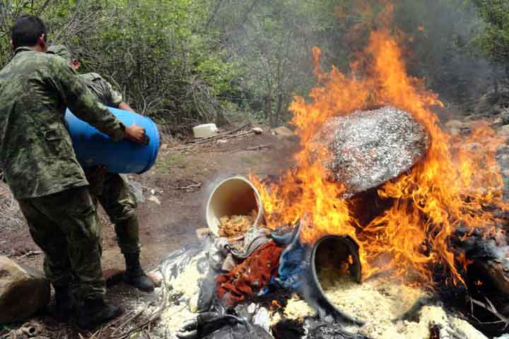 NOTICIAS 27/06/2012Ejército destruye narcolaboratorio en TocumboLuego de intensos patrullajes contra el crimen, elementos del Ejército Mexicano localizaron y destruyeron un laboratorio clandestino utilizado para la elaboración de droga sintética, donde se aseguró más de media tonelada de narcótico en su última fase de producción, ocho reactores y diversos precursores químicos y utencilios que eran empleados en esta actividad ilícita.