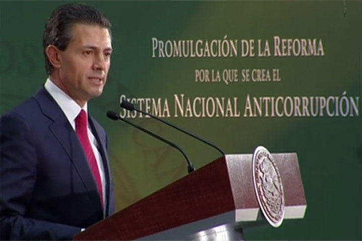 NOTICIAS 27/05/2015Ley anticorrupción, paso histórico que pone fin a impunidad: EPNLa reforma anticorrupción es un auténtico cambio de paradigma para combatir de manera frontal la corrupción, un paso histórico en favor de una nueva cultura de la legalidad para poner fin a la impunidad, afirmó el presidente Enrique Peña Nieto.