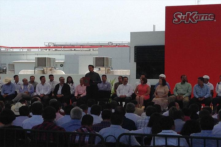El presidente de la República, Enrique Peña Nieto arribará en unos momentos más a la empresa SuKarne ubicada en este municipio en donde dará el banderazo de salida a contenedores de carga con sus productos, dirigidos a Mercados Internacionales.