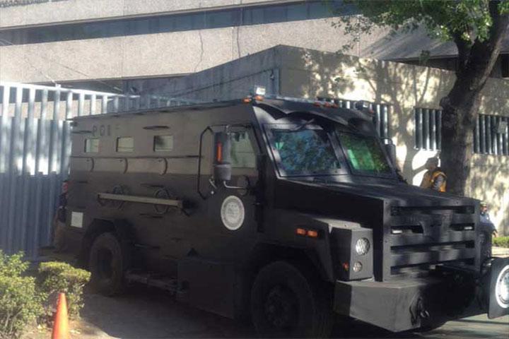 En el marco, en la Subprocuraduría Especializada en Investigación de Delincuencia Organizada (Seido), un convoy de camionetas Pick Up de la PF con elementos armados, inició rondines en torno a este perímetro de las instalaciones en espera de que arribe Servando Gómez Martínez.