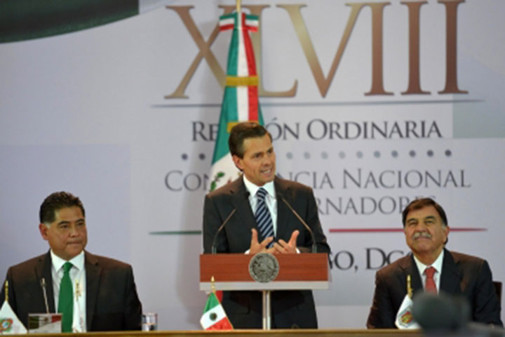 NOTICIAS 25/02/2015Llama Peña ante gobernadores a "jalar parejo" para vigencia de la leyEl presidente Enrique Peña Nieto advirtió que para cumplir con el objetivo de dar plena vigencia al Estado de derecho en todo el país es fundamental que todos los órdenes de gobierno trabajen de manera conjunta y que "jalemos parejo".