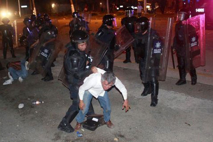 Al filo de las 19:30 horas maestros trataron de embestir a los elementos federales, por lo que los uniformados repelieron la agresión e iniciaron un operativo para desalojar a los manifestantes, quienes desde esta tarde tenían bloqueada la entrada al aeropuerto de Acapulco.