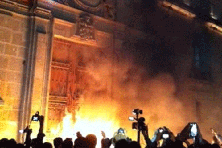 NOTICIAS 09/11/2014Queman puerta de Palacio Nacional en la ciudad de México"Fue el Estado" y "que se vayan todos", gritos de batalla de un contingente que marchó de la PGR al Zócalo en solidaridad con Ayotzinapa.