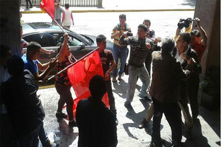 El hecho quedó registrado en un video colgado en el canal Veracruznosinfotv de YouTube, donde se ven a manifestantes que portan carteles y banderas con las siglas del Frente Popular Revolucionario (FPR), quienes le gritan "¡asesino!" en diversas ocasiones, en alusión a que su p... Ver más...