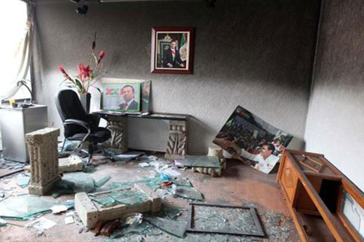 Los normalistas arribaron a bordo de 17 autobuses a las 5 de la tarde al Palacio de Gobierno, ingresaron al inmueble y se dirigieron a las distintas oficinas donde realizaron destrozos.
