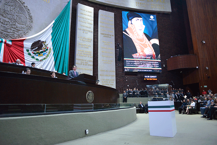 NOTICIAS 22/10/2014Celebran diputados aniversario de la Constitución de ApatzingánLos presidentes de la Cámara de Diputados, Silvano Aureoles, y de la Junta de Coordinación Política, Manlio Fabio Beltrones, encabezaron una guardia de honor ante el ejemplar original de la Constitución de Apatzingán.