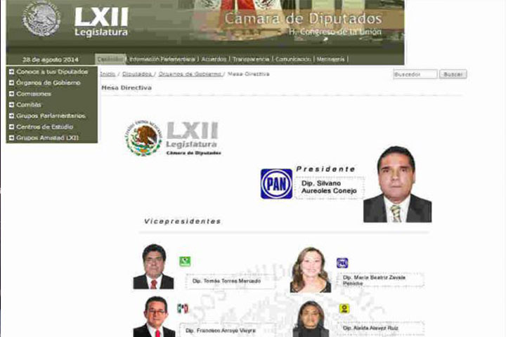 En la página oficial del recinto de San Lázaro aparece la foto del perredista con el cargo de presidente, pero acreditado al Partido Acción Nacional (PAN).