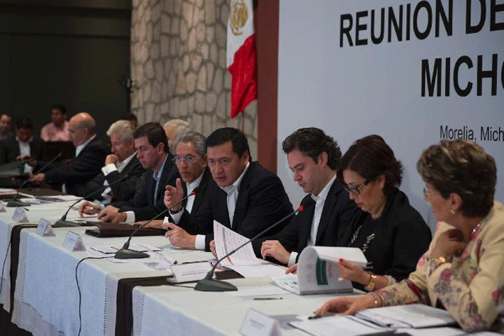 NOTICIAS 03/07/2014Encabezan el Secretario de Gobernación y el Jefe de la Oficina de la Presidencia Reunión de Evaluación MichoacánEl Secretario de Gobernación, Miguel Ángel Osorio Chong, y el Jefe de la Oficina de la Presidencia de la República, Aurelio Nuño Mayer, acompañados por integrantes del Gabinete del Gobierno de la República, encabezaron la Reunión de Evaluación Michoacán, en la cual analizaron los avances de los 250 compromisos que hizo el Presidente Enrique Peña Nieto, en el marco del Plan Michoacán.