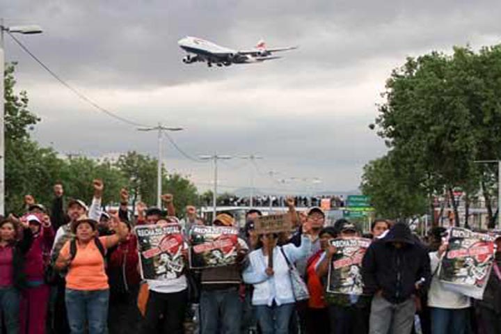 NOTICIAS 01/10/2013Sorprenden profesores y bloquean acceso del aeropuerto por viaductoUn grupo de maestros de la Coordinadora Nacional de Trabajadores de la Educación (CNTE) sorprendieron y bloquean la lateral de Boulevard Puerto Aéreo en el sentido que va de Viaducto hacia el Aeropuerto Internacional de la Ciudad de México (AICM).