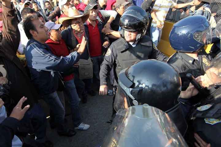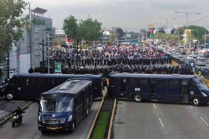 El encontronazo se dio en Boulevard Puerto Aéreo cuando la disidencia magisterial pretendía cerrar el bloque de carriles centrales y laterales con dirección hacia Río Churubusco, lo cual fue impedido.