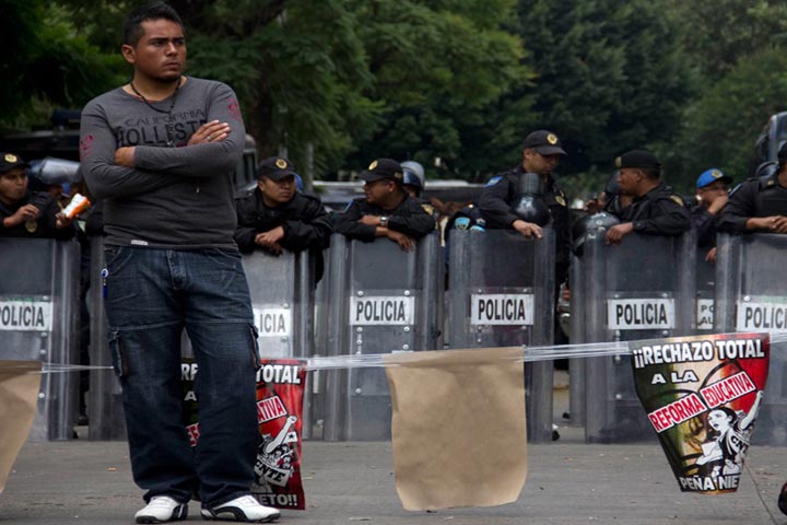 Maestros de la Sección 22 de la Coordinadora Nacional de Trabajadores de la Educación (CNTE), que iniciaron el acordonamiento del edificio de la SEP, advirtieron que no bajarán la guardia ante la promulgación de las leyes secundarias de la reforma educativa que se realizará hoy a las 11:30 horas en Los Pinos, por parte del presidente Enrique Peña Nieto.