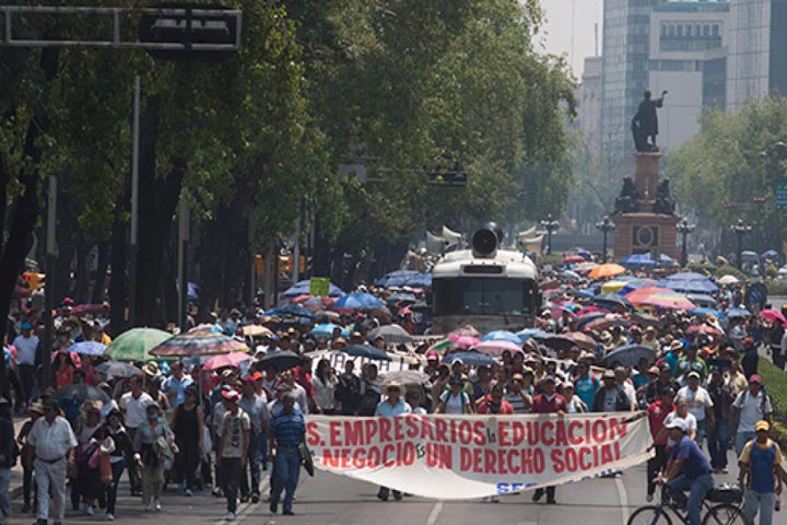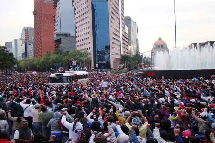 A la marcha se han sumado estudiantes normalistas, integrantes del Sindicato Mexicano de Electricistas, así como trabajadores del Instituto Nacional de Antropología e Historia y se espera que siga creciendo el número de contingentes.