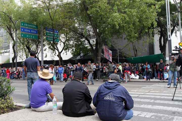 Integrantes de la Coordinadora Nacional de Trabajadores de la Educación (CNTE) bloquean la circulación en carriles centrales en ambos sentidos de Paseo de la Reforma, así como avenida Insurgentes desde la Glorieta del mismo nombre hasta San Cosme.