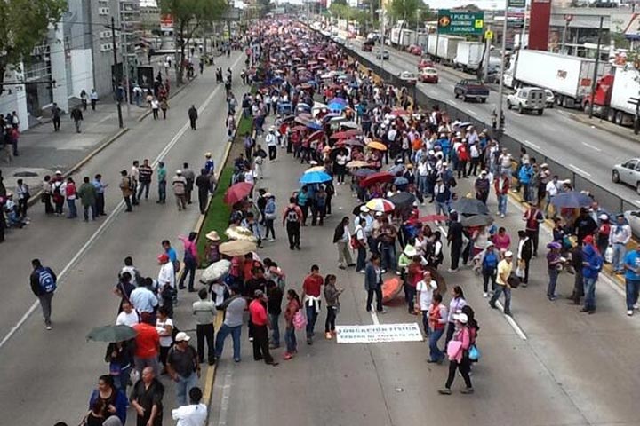 Integrantes de la Coordinadora Nacional de Trabajadores de la Educación protestan frente a las instalaciones de Televisa y de TV Azteca, y mantienen bloqueada la avenida Chapultepec, así como la lateral de Periférico Sur.
