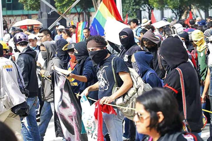 NOTICIAS 01/09/2013Grupos calificados como anarquistas arremeten contra policía en Cd. de México y se unen a democráticosEn Eje Central y Venustiano Carranza, grupos de anarquistas han detonado al menos una decena de petardos contra comercios, sin que granaderos pudieran evitarlo, los manifestantes rompieron el cerco policial y comenzaron a golpear a los agentes con palos y piedras.