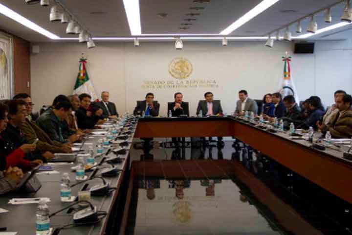 Integrantes de la Junta de Coordinación Política (Jucopo) del Senado de la República se reúnen con una comisión de la Coordinadora Nacional de Trabajadores de la Educación (CNTE), para escuchar sus opiniones sobre la reforma educativa.