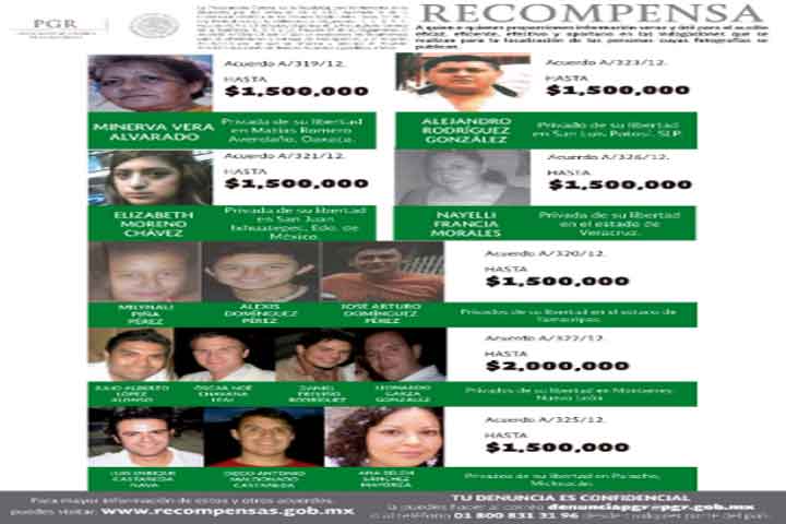 NOTICIAS 27/08/2013Ofrece PGR recompensas para localización de desaparecidos