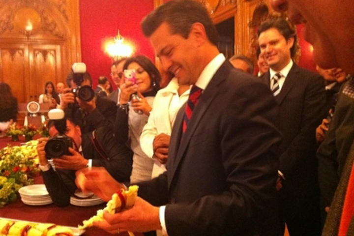 En enero del año pasado, cuando todavía era precandidato del PRI a la Presidencia, Peña Nieto también sacó el muñeco de la rosca.