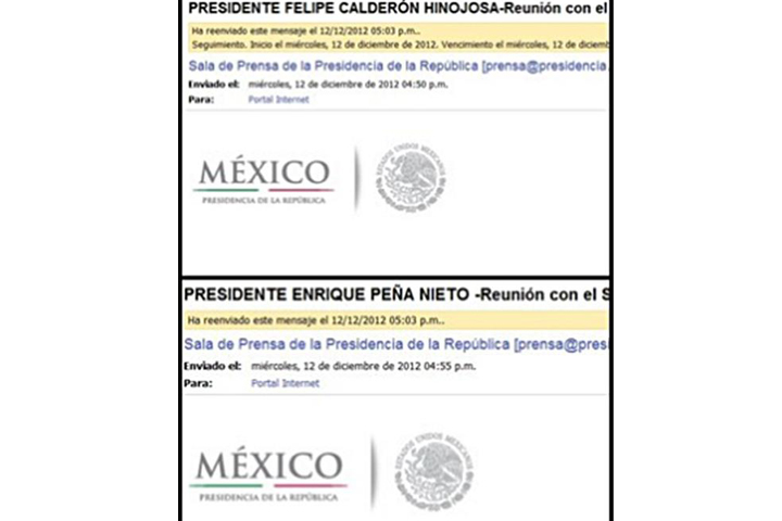 La Presidencia de México envió este día un correo a los medios de comunicación en las que se les informaba sobre una reunión del Presidente con el sector productivo de Baja California, y en el asunto venía: "Presidente Felipe Calderón Hinojosa".
