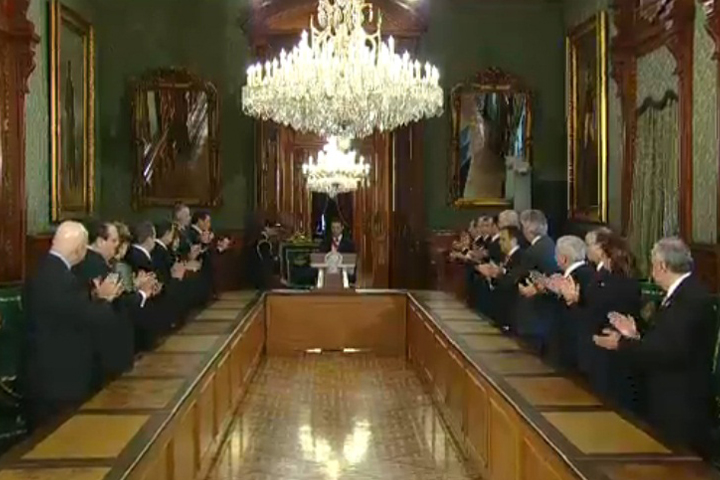 NOTICIAS 01/12/2012EPN toma protesta a su gabinete en Palacio NacionalEl presidente de México, Enrique Peña Nieto, tomó hoy protesta a los miembros de su gabinete, con lo que quedó conformado su equipo de trabajo, tras la ceremonia que se realizó esta madrugada, donde los encargados de la seguridad del país juraron sus cargos.