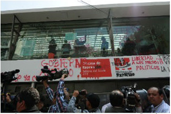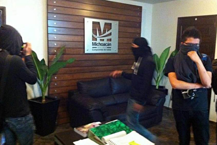 NOTICIAS 23/10/2012Crónica de un secuestro "medida de presión"Alrededor de las 12.30 horas en la colonia Nápoles de la ciudad de México donde se encuentra la representación de oficinas del Gobierno de Michoacán se escuchó el sonido del timbre, el vigilante atentamente salió a abrir y se encontró con encapuchados que con cadenas, chacos, tubos amenazantes ingresaron al edificio.