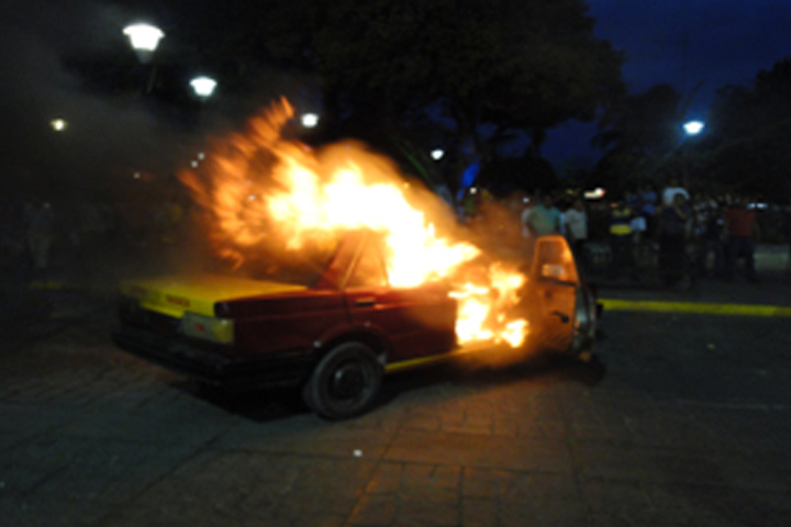 NOTICIAS 24/10/2012Taxistas destrozan patrullas en Juchitán, OaxacaUn grupo de taxistas del municipio de Juchitán de Zaragoza en la zona del Istmo de Tehuantepec que demandaban operativos para detener unidades piratas, además de que exigían la renuncia de mandos policiacos, terminaron por incendiar patrullas y dañaron las instalaciones de Tránsito perteneciente al gobierno de Gabino Cué, tras protagonizar un enfrentamiento con policías estatales que buscaron desalojarlo de una carretera estatal.