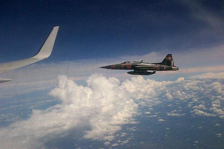De acuerdo a fuentes de la Presidencia, los dos aviones escoltan el avión presidencial "en agradecimiento a que -el Presidente - ya los dejó volar, y como un agradecimiento en general", pu... Ver más...