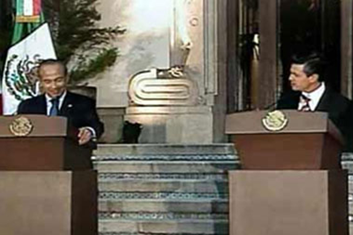 NOTICIAS 05/09/2012Peña Nieto agradece y reconocer apoyo de Calderón para la transición PresidencialEl presidente electo de México, Enrique Peña Nieto, destacó este día el apoyo institucional ofrecido por Felipe Calderón Hinojosa para instrumentar las agendas de políticas, acciones y programas que pondrá en práctica a partir del 1 de diciembre próximo.