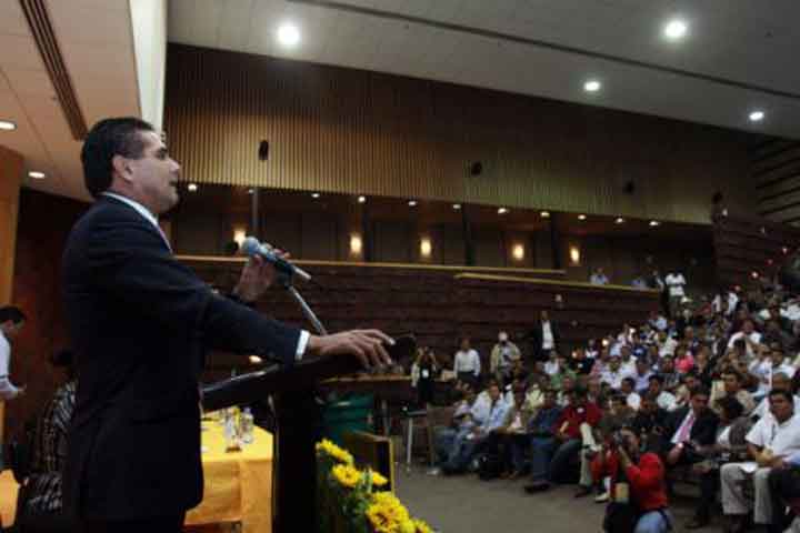 Al iniciar su discurso en el Teatro Morelos, Ávila Villegas agradeció la presencia de Peña Nieto, a quien llamó "un paisano muy querido".
