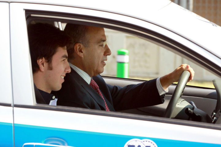 NOTICIAS 16/08/2012El Presidente Calderón y Checo Pérez pilotean un vehículo y lanzan campañaEl Presidente Felipe Calderón presentó la Campaña "Pilotos por la Seguridad Vial" mediante la cual se promoverán en la sociedad medidas básicas de prevención. Durante su discurso, el Presidente mencionó un conjunto de reglas de vialidad que deben tenerse presentes, para manejar de forma más responsable y, con ello, salvar muchas vidas: