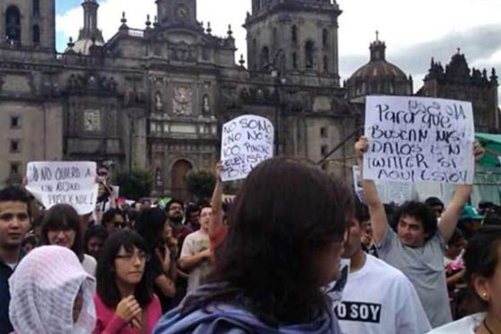 NOTICIAS 07/07/2012Llega al Zócalo de la ciudad de México nueva marcha anti-peñaLa primera parte del contingente que salió a las 3 de la tarde del Ángel de la Independencia arribó al Zócalo de la ciudad de México, mientras que miles de personas continúan el recorrido.