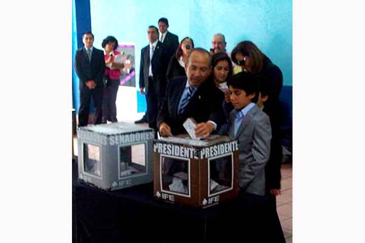 NOTICIAS 01/07/2012Felipe Calderón felicito a ciudadanos que ejercen su derecho al voto El presidente Felipe Calderón Hinojosa felicitó a todos los y las mexicanos que están ejerciendo su derecho al sufragio y resaltó que, en lo personal, "es un gusto cumplir con mi deber ciudadano de votar".