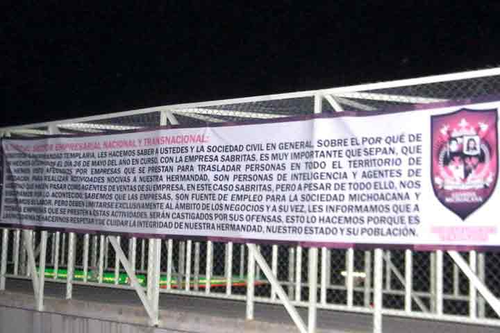 NOTICIAS 31/05/2012"Los Caballeros Templarios" se adjudican ataque a Sabritas; advierten a las demás empresasEl ataque a la empresa Sabritas del pasado fin de semana en los estados de Michoacán y Guanajuato, se lo ha adjudicado el grupo criminal de "Los Caballeros Templarios" mediante algunas mantas colocadas en diversos municipios de Apatzingán y según reportes oficiales, también en la ciudad de Morelia.