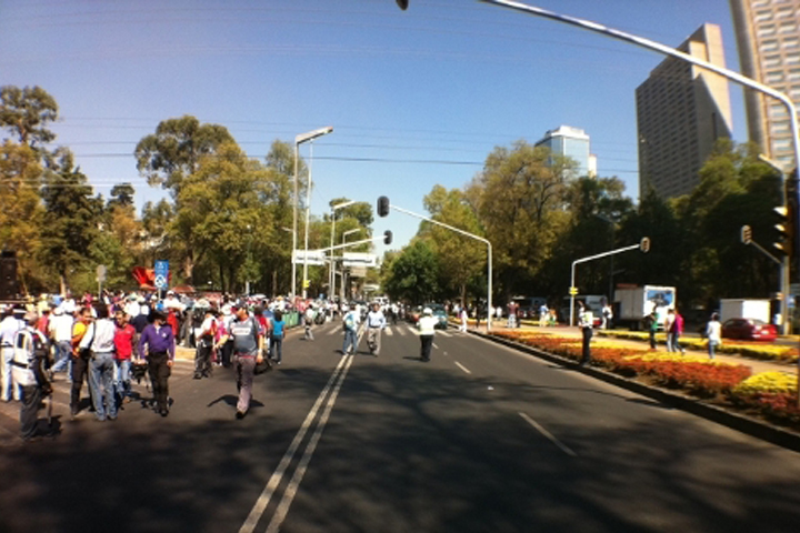 NOTICIAS 31/05/2012Marcha de la CNTE colapsa la Ciudad de MéxicoActualmente, la movilización se desplaza por Paseo de la Reforma, ambos sentidos, aproximándose al Ángel de la Independencia. La onda expansiva de problemas viales ha llegado a vías como Circuito Interior, Chapultepec y la zona de Polanco.
