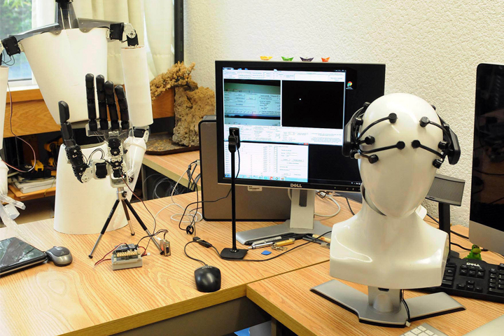 A lo largo de un par de meses, el estudiante de Ingeniería ha entrenado para manejar esa prótesis mediante ondas cerebrales.