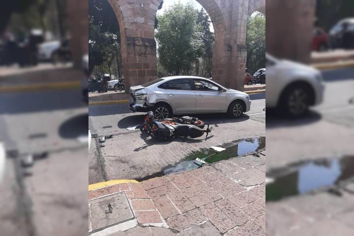 NOTICIAS 24/05/2023Choque entre moto y auto deja 1 herido en la Av. Acueducto de Morelia La tarde de este miércoles, se registró un choque de motocicleta contra un auto sobre la avenida Acueducto de la ciudad de Morelia. El percance dejó un lesionado, trascendió en la labor noticiosa.