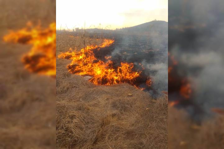 Elementos de Bomberos apagaron un incendio de pastizal ocurrido en la localidad de Ocurio.