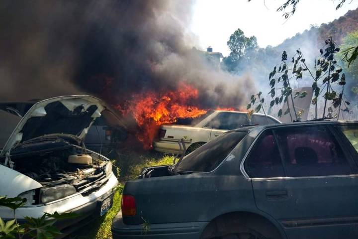 El siniestro sucedió la mañana de este lunes en el referido deshuesadero localizado a la altura del kilómetro 34. Trascendió que en el sitio había una quema de pastizal, la cual alcanzó los automotores con los resultados ya mencionados.