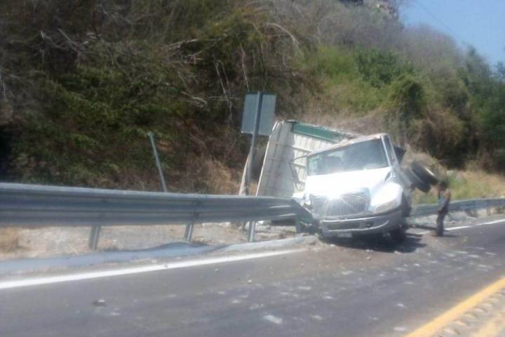 Un camión de carga chocó se salió de la cinta asfáltica y en la carretera Siglo XXI a la altura del municipio de Múgica.