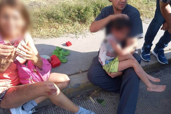 Una mujer y su pequeño hijo quedaron con diversas lesiones y raspaduras en distintas partes del cuerpo al derrapar su motocicleta luego de que se les atravesara un perro, según indicaron algunos testigos.