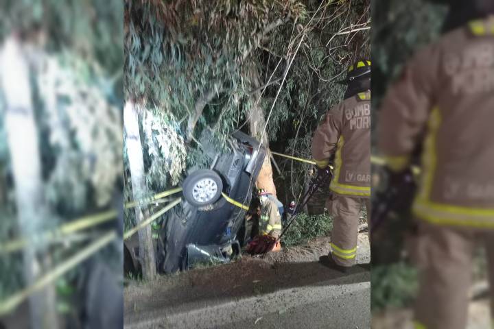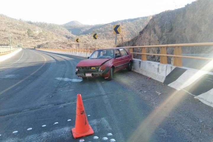 El conductor de un vehículo particular resultó herido, luego de que su unidad se saliera de la carpeta asfáltica en una curva y cayera a in desnivel, para terminar atorado entre algunas ramas a unos metros de Casa Michoacán.