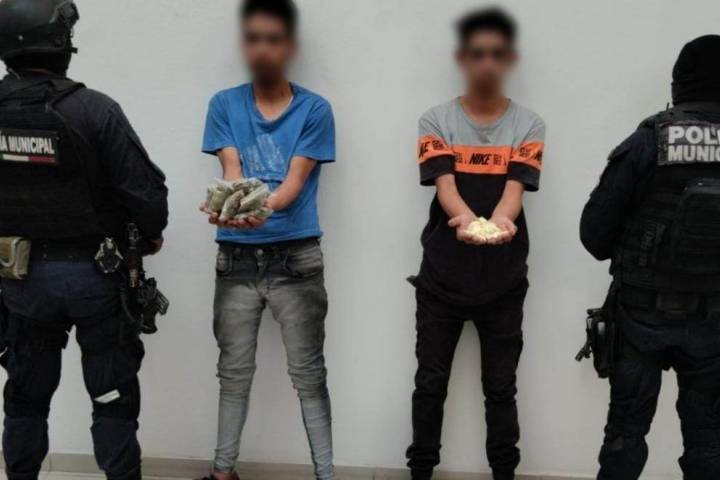 Elementos de la Dirección de Seguridad Pública Municipal reportaron la detención de dos hombres en posesión de varios envoltorios con diversas drogas.