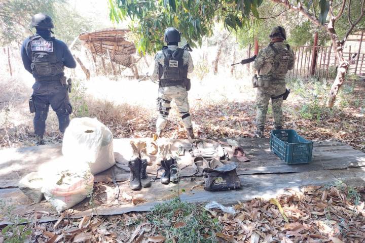 NOTICIAS 01/03/2023En Tierra Caliente se asegura equipo táctico, droga y se desmantela punto de observación Los agentes de las Secretarías de Seguridad Pública y de la Defensa Nacional (Sedena), en coordinación con la Guardia Nacional (GN); a través de los trabajos de las Bases de Operaciones Interinstitucionales (BOI) en los municipios de Aguililla y Tumbiscatío decomisaron equipo táctico, droga y desmantelaron un punto de observación utilizado por miembros de grupo delincuencial.