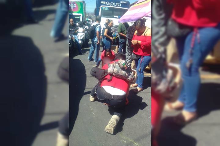 Una mujer que se dedicaba a vender pan, resultó lesionada debido a que una motocicleta se estrelló contra ella y su puesto en la vía pública del municipio de Zitácuaro.