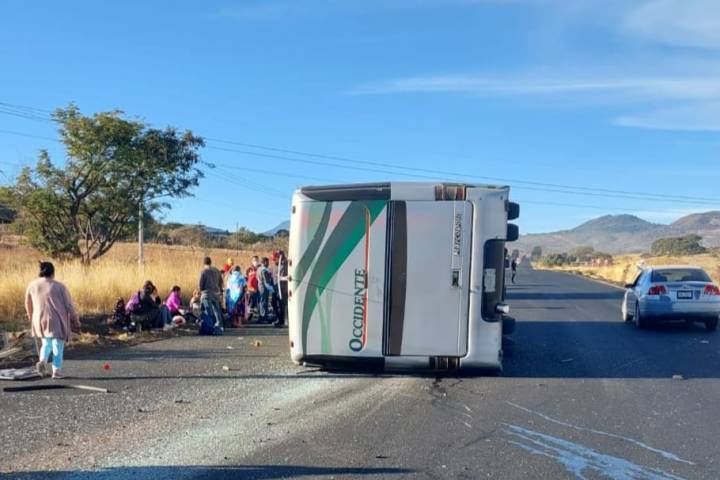 Al menos nueve personas fueron hospitalizadas y otras más valoradas en el lugar, luego de que volcara el autobús en el que viajaban con rumbo al municipio de Los Reyes.