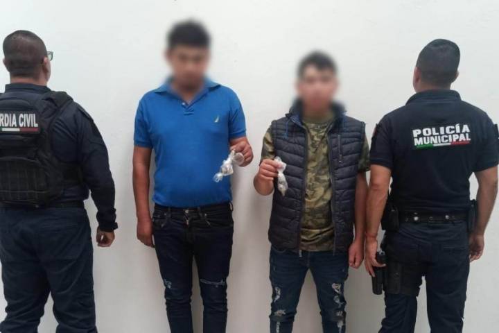 Tras un reporte ciudadano agentes de la Policía Municipal y Guardia Civil detuvieron a dos muchachos en posesión de varios envoltorios con sustancia granulada con las características propias de la metanfetamina.