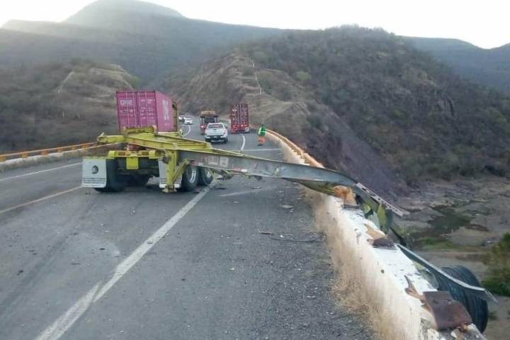 El accidente se registró la tarde de este domingo, a la altura del kilómetro 117, cuando al parecer el chófer del tractocamión perdió el control de su unidad y choca contra el barandal de protección y termina por precipitarse al vacío.