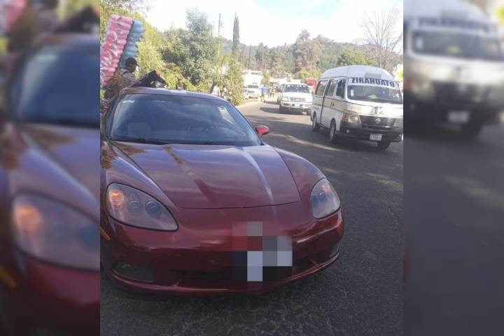 Dicha situación fue atendida por personal de Bomberos de Zitácuaro, quienes al llegar al sitio indicado localizaron siniestrados un vehículo un Nissan, Tsuru con rótulos de Taxi Angangueo, y un Chevrolet, Corvette, color vino.